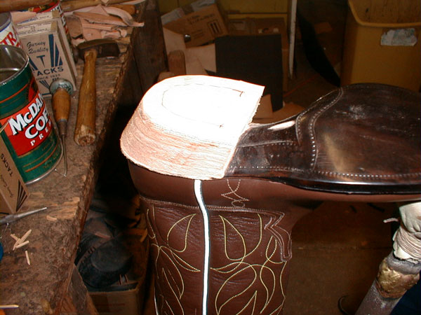 Shape into a heel by trimming with a knife and grinding.