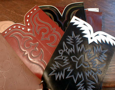 I really liked these...they're a bunch of stitched boot tops on a big metal ring. You can flip through the patterns and run your finger across the stichin'. Lee can tell you some about the historical differences in stitch patterns...their regional origins and popularity...the differences between the stitchin' on a New Mexico, Oklahoma and West Texas boot top.